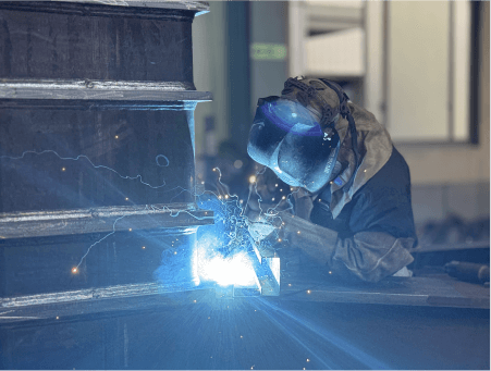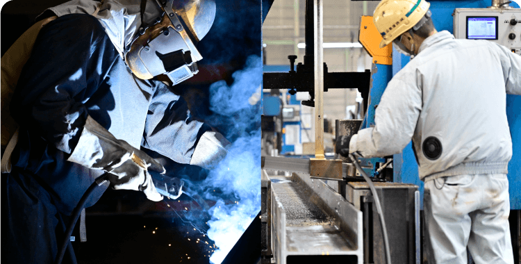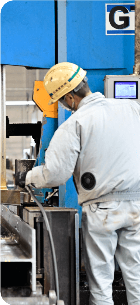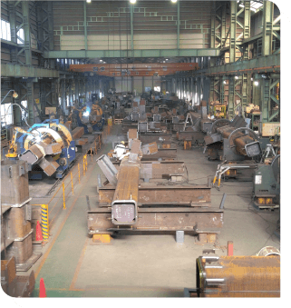 私たちは、各種鋼材へ切断・曲げ・孔開け・溶接等施し、建築物の主構造体である鉄骨加工を一貫して手がける専門メーカーです。