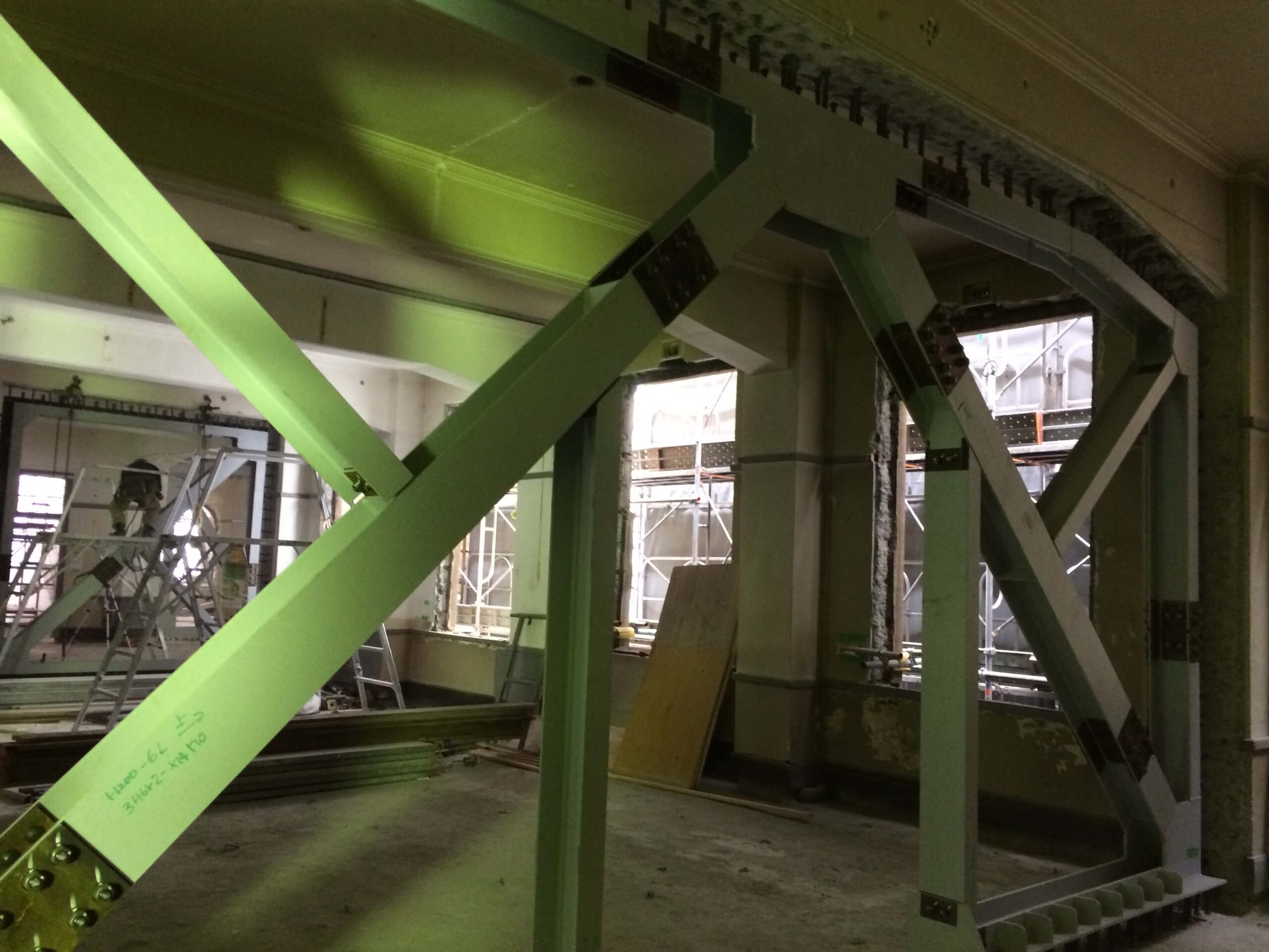 県庁別館耐震補強 馬場設計・アルケドアティス内藤ハウス・国際建設・興龍社JV 耐震枠85枠 120t