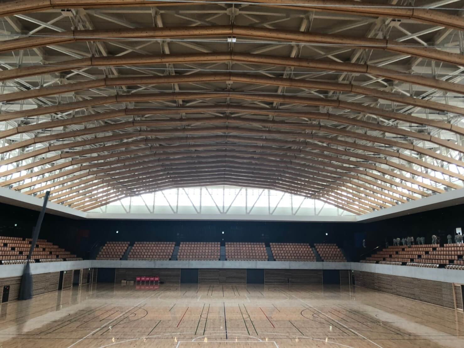 ㈱日建設計 清水建設㈱ アリーナ:集成材梁絡み、パイプ三次元柱 プール:ドーム状屋根 320t